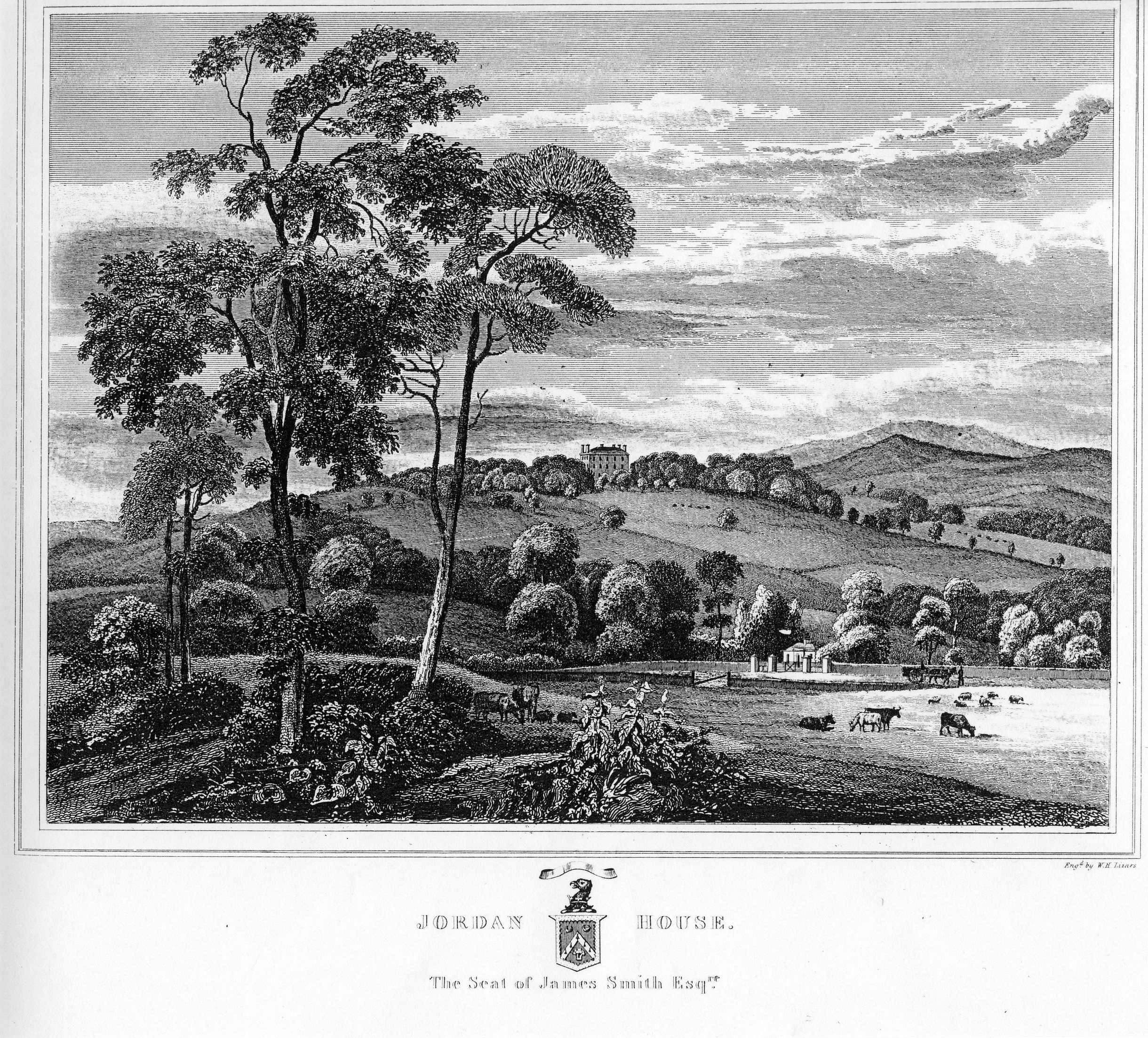 This view shows Jordan Hill, as it looked in the DATE. The house was constructed. The property was about 4 miles to the west of Glasgow, in parish and county of Renfrew. The house was built for Andrew Houston, in the 1780s, and it subsequently acquired by Archibald Smith, a wealthy West India merchant.